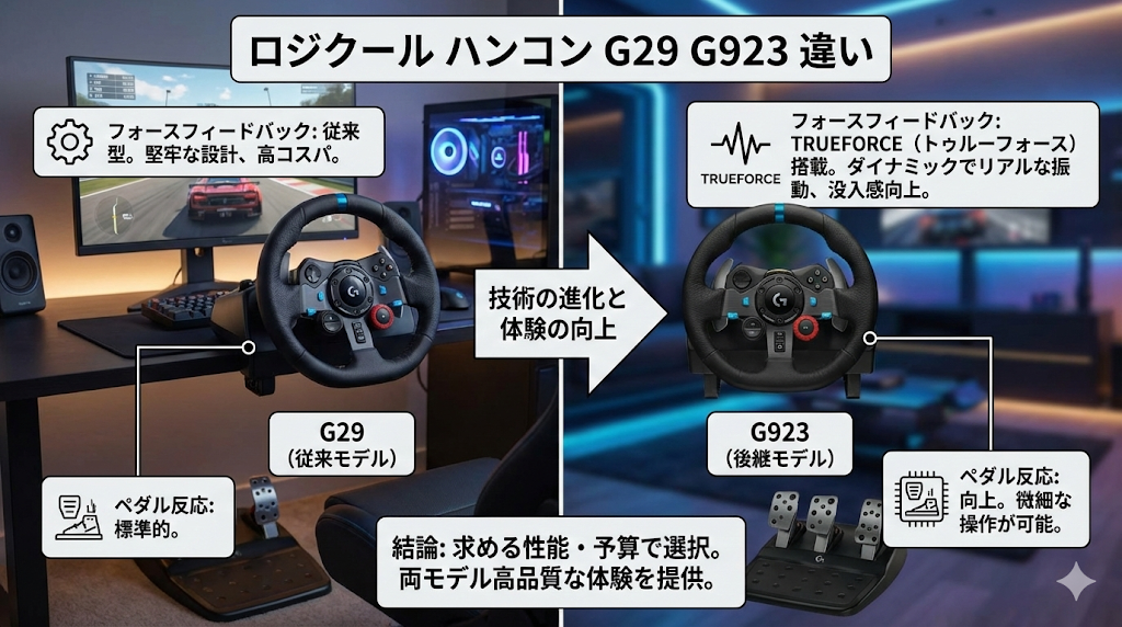 さらに、G29の後継モデルであるG923との違いや、どちらがおすすめかという点にも触れていきます。