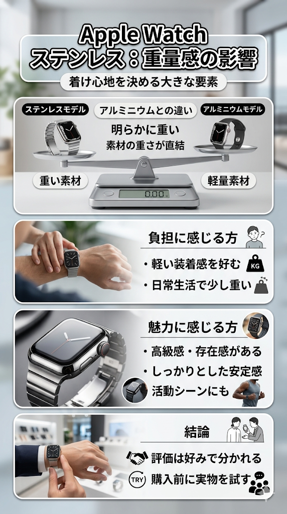 ステンレスモデルのApple Watchを選ぶ際に考慮したいのが、その重量感です。