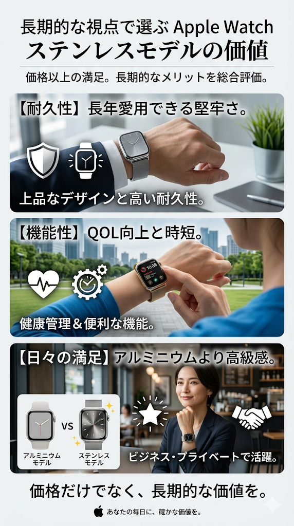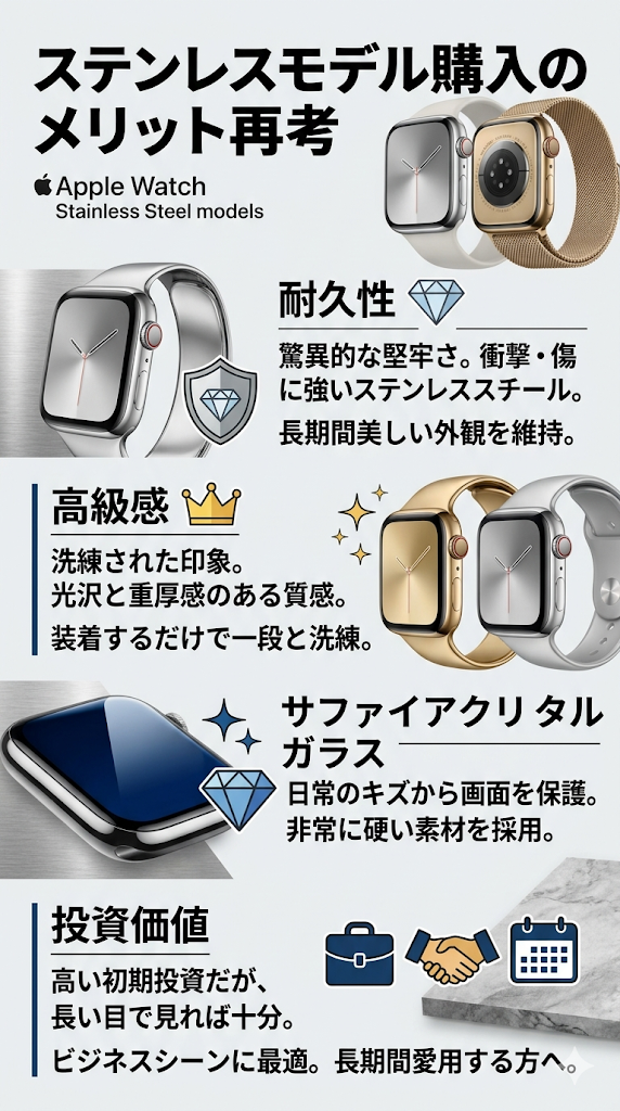 アップルウォッチ、特にステンレスモデルの購入を考える際には、長期的な視点での価値評価が重要です。