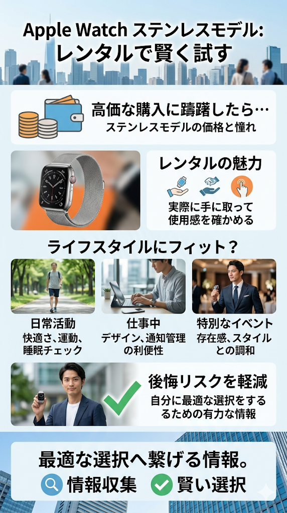 しかし、「アップルウォッチ ステンレス 後悔」と検索している方も少なくないことから、その魅力とは一体何なのか、また選び方に失敗しないためにはどうすればいいのか、ステンレスモデル購入のメリットを再考し、他ブランドのスマートウォッチとの比較検討も含めた幅広い視点から検討する必要があります。