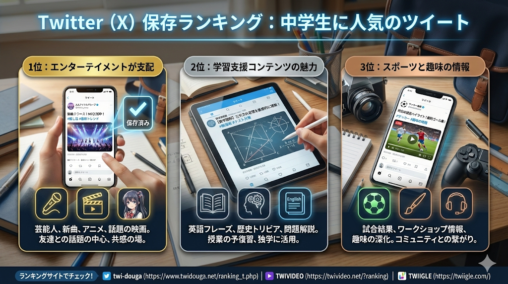 中学生に人気のTwitter(X)保存ランキングでは、彼らが興味を持つツイートの傾向が明らかになります。
