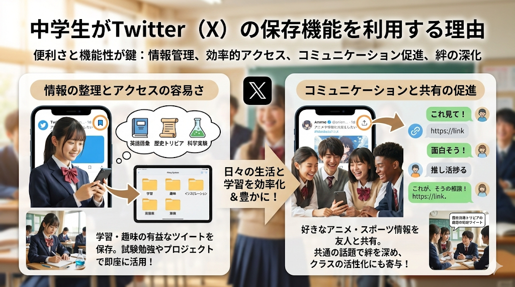 中学生がTwitter(X)の保存機能を積極的に利用している背景には、その便利さと機能性が大きく関わっています。