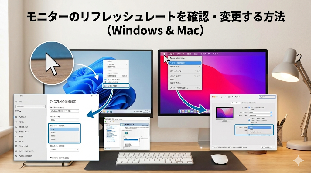 具体的な確認ポイントや設定方法も紹介するので、モニターのリフレッシュレートを最適に設定したい方にとって役立つ内容です。
