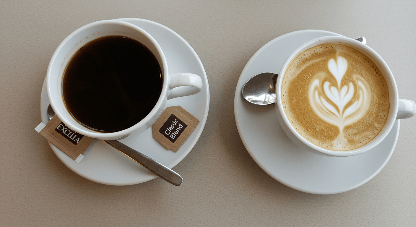 エクセラは、すっきりとした味わいで軽やか。ブラックでも飲みやすく、初心者やライトユーザー向きです。