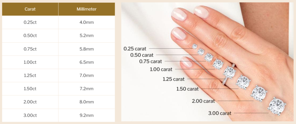 • 予算100万円で購入できる天然ダイヤモンドの目安は1カラット前後である